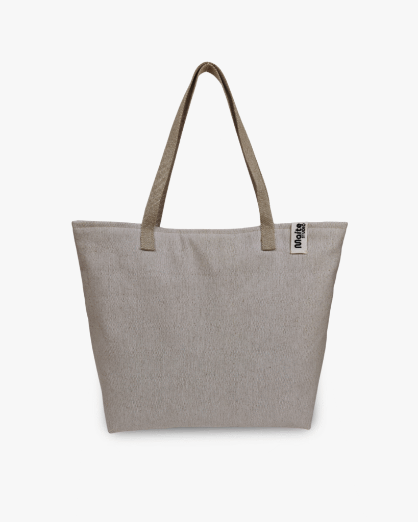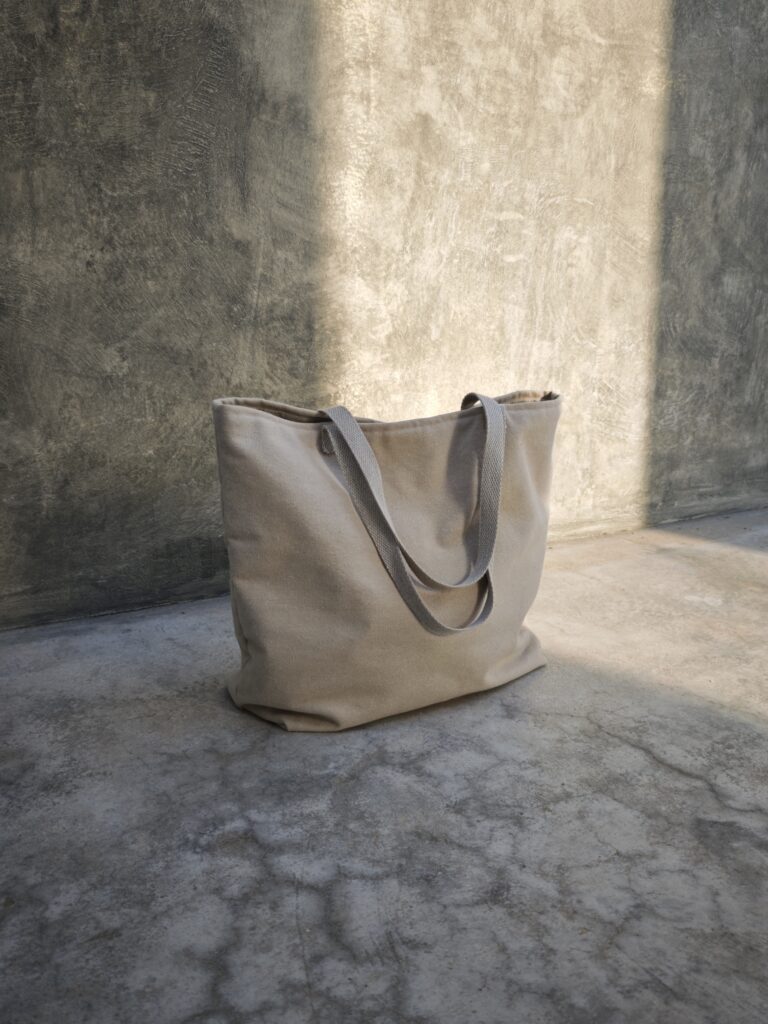 While most tote bags on the market contain plastic-based fabrics, zippers, or synthetic thread, we’ve taken a different approach. Every detail — from the outer fabric to the stitching — is made from sustainable sources.