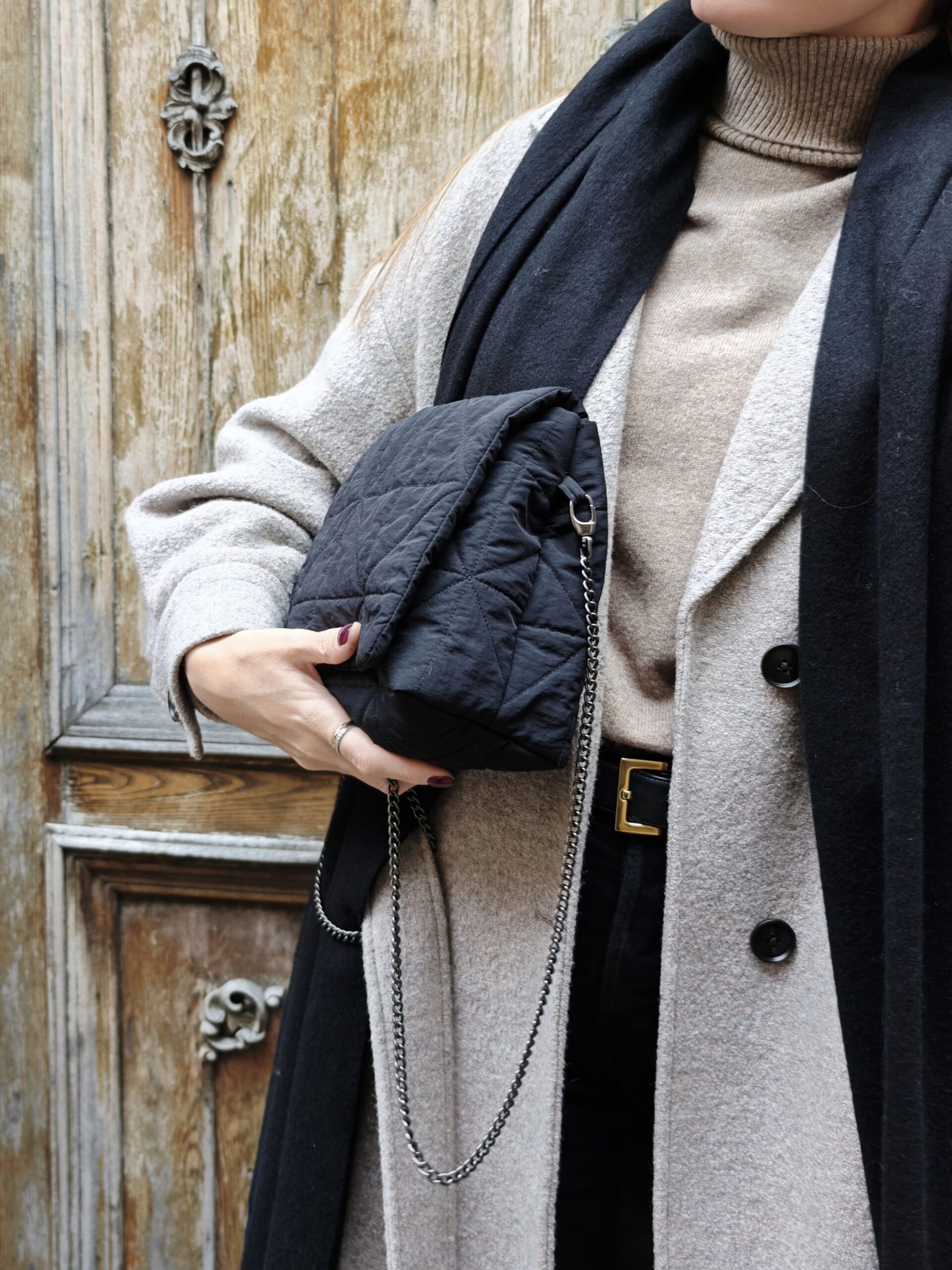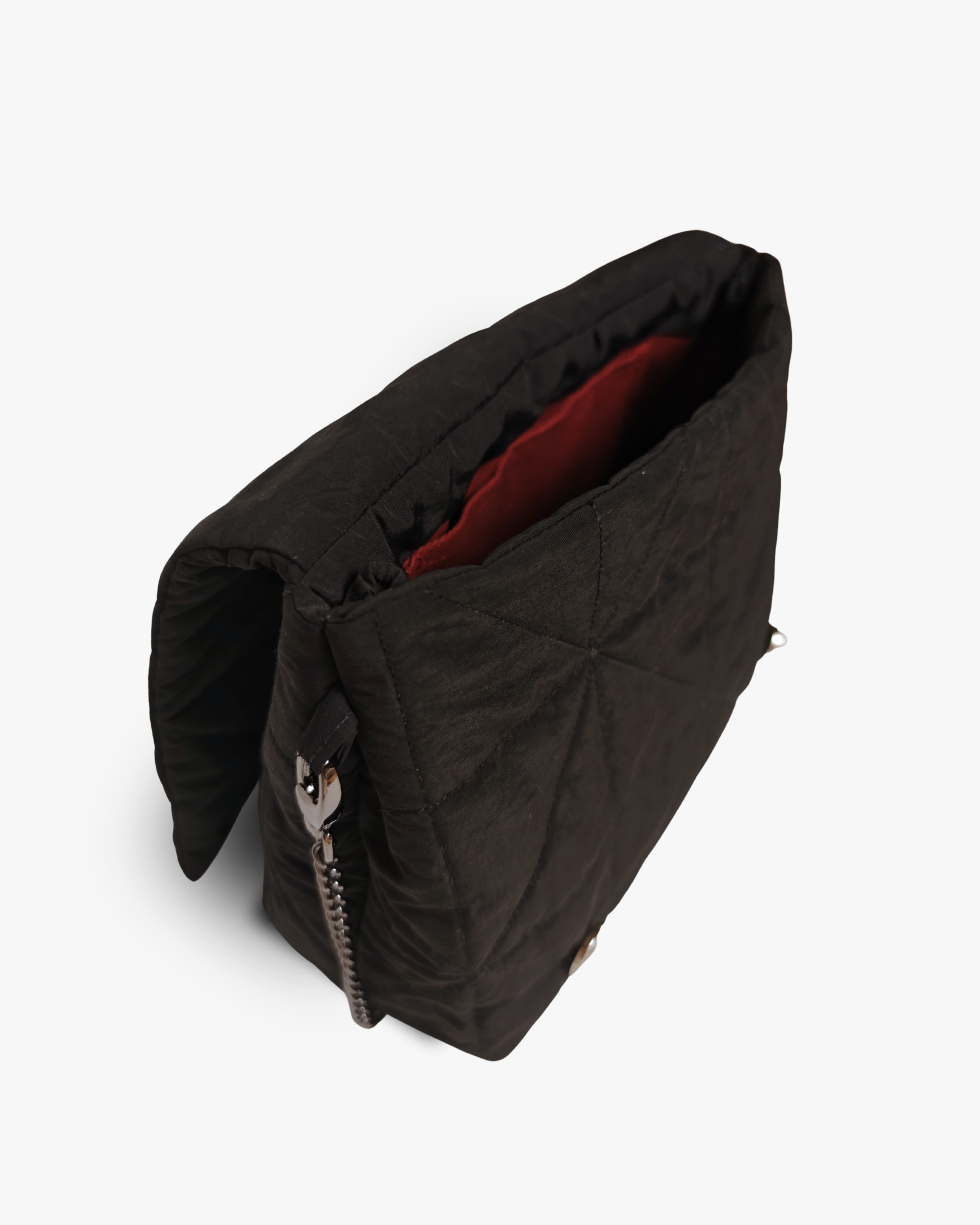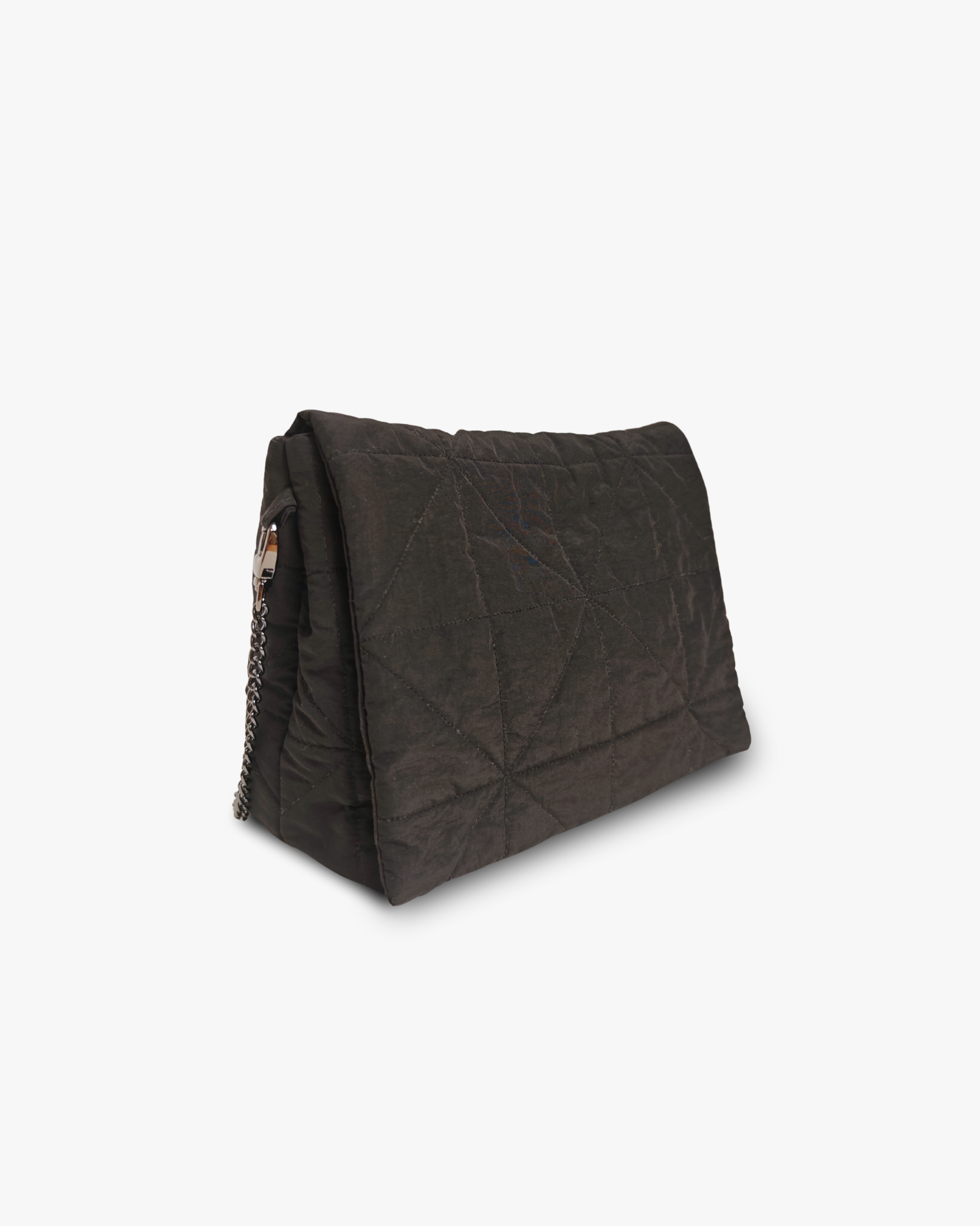Designed with understated sophistication and everyday practicality, this handbag is crafted from recycled waterproof nylon and features a subtly quilted, cushioned finish that adds a refined softness reminiscent of high-end outerwear—without appearing bulky. Beneath the surface, a lightweight interfacing made from a sustainable soy and cotton blend provides gentle structure while keeping the bag exceptionally light and comfortable to carry.